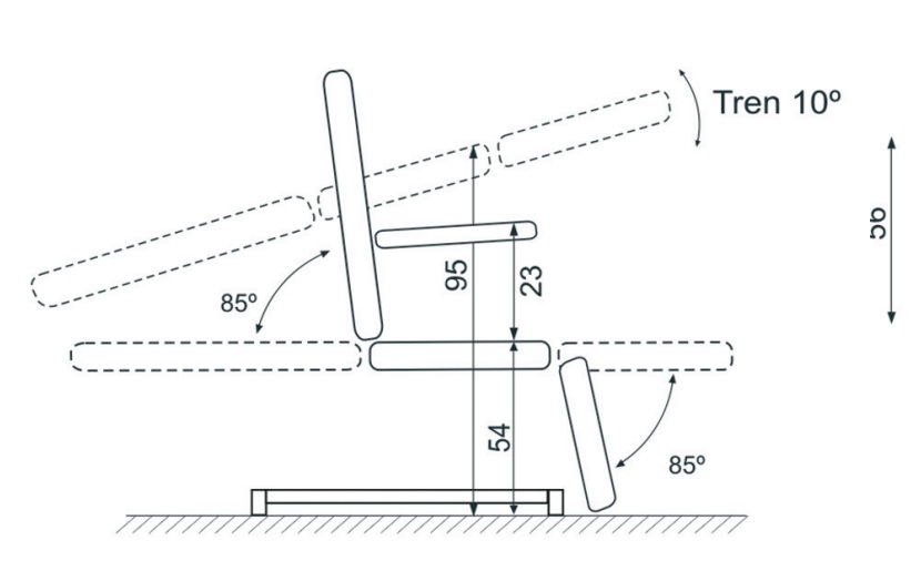plano completo de respaldo más asiento más reposapiernas con movimiento de elevación en altura y trendelenburg simultaneo eléctrico,